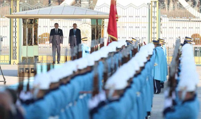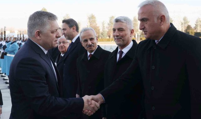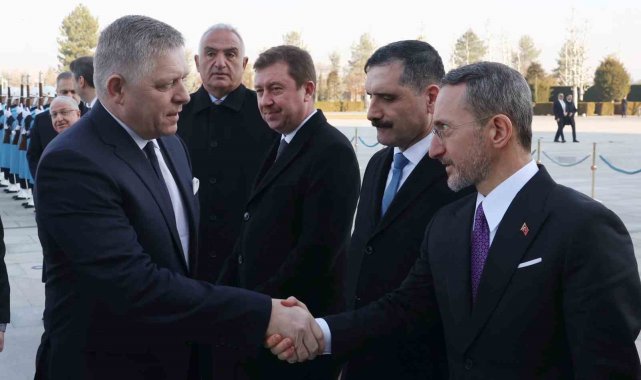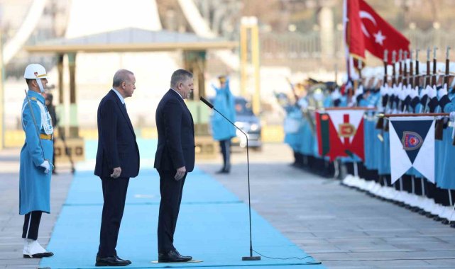 Cumhurbaşkanı Recep Tayyip Erdoğan, Slovakya Başbakanı Robert Fico'yu resmi törenle karşıladı.Konuk Başbakan Fico'nun içinde bulunduğu makam aracını Cumhurbaşkanlığı Külliyesi'nin önündeki caddede karşılayan süvariler, Fico'ya protokol kapısına kadar eşlik etti.Cumhurbaşkanı Erdoğan, Fico'yu Cumhurbaşkanlığı Külliyesi'nin ana giriş kapısında karşıladı. Cumhurbaşkanı Erdoğan ve Fico'nun tören alanındaki yerlerini almalarının ardından, 21 pare top atışı eşliğinde iki ülkenin milli marşları çalındı. Fico, Muhafız Alayı Tören Kıtası'nı 'Merhaba Asker' diyerek selamladı.Törende, tarihte kurulan 16 Türk devletini temsil eden bayraklar ve askerler de yer aldı.Heyetlerini birbirine takdim eden Erdoğan ve Fico, merdivenlerde Türkiye ve Slovakya bayrakları önünde gazetecilere poz verdi.Baş başa görüşmeye geçen Erdoğan ve Fico, ikili ve heyetler arası gerçekleştirecekleri görüşmelerin ardından anlaşmaların imza törenine katılacaklar ve sonrasında ortak basın toplantısı gerçekleştirecekler.Törende, Dışişleri Bakanı Hakan Fidan, Milli Savunma Bakanı Yaşar Güler, Enerji ve Tabii Kaynaklar Bakanı Alparslan Bayraktar, Kültür ve Turizm Bakanı Mehmet Nuri Ersoy, Ulaştırma ve Altyapı Bakanı Abdulkadir Uraloğlu, Ticaret Bakanı Ömer Bolat, Cumhurbaşkanlığı Özel Kalem Müdürü Hasan Doğan, Cumhurbaşkanlığı İletişim Başkanı Fahrettin Altun, Cumhurbaşkanlığı İdari İşler Başkanı Hakkı Susmaz, Cumhurbaşkanı Güvenlik ve Dış Politika Başdanışmanı Akif Çağatay Kılıç ve Ankara Valisi Vasip Şahin de yer aldı.