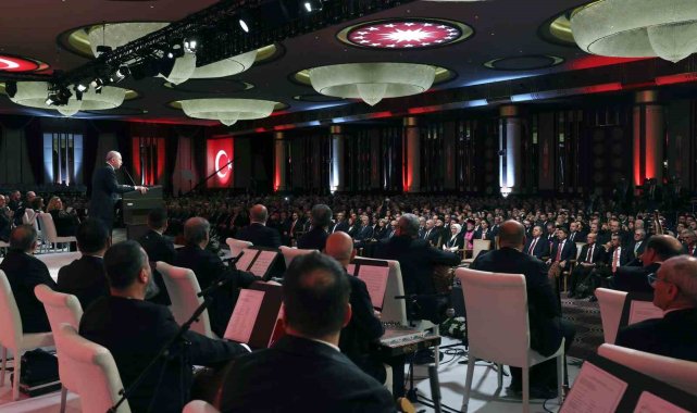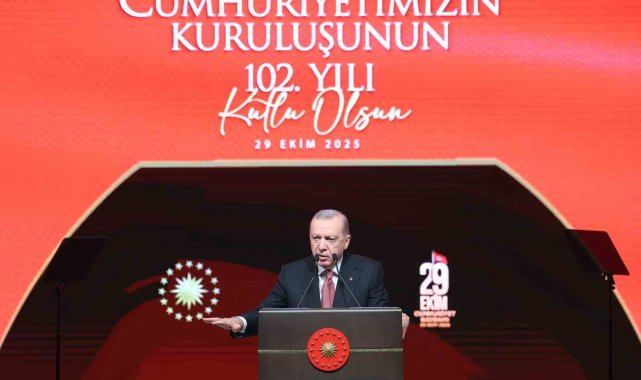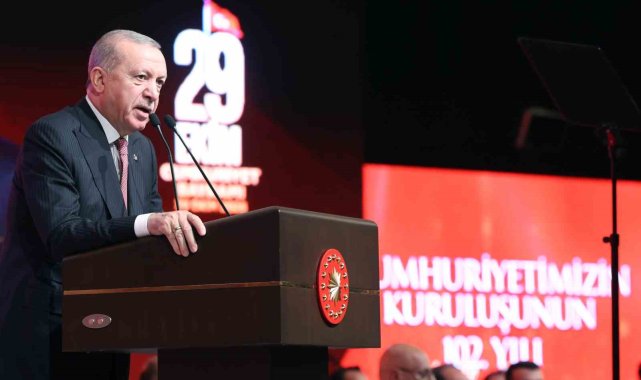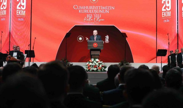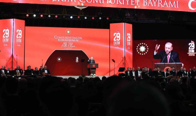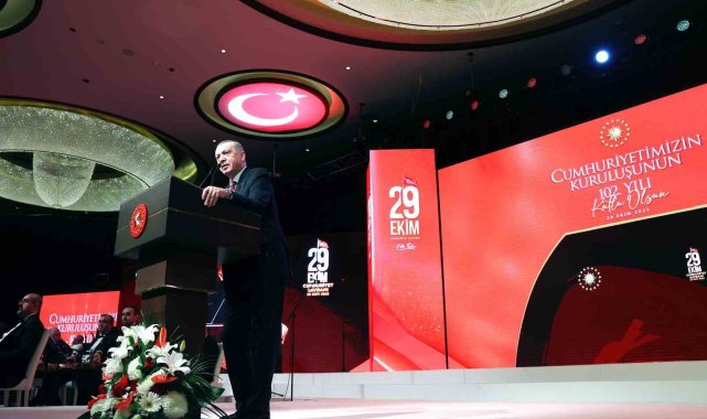 Cumhurbaşkanı Recep Tayyip Erdoğan, "Bu irademiz sapasağlam ayakta olduğu sürece, bu millet, binlerce yıldır olduğu gibi, muhabbetle kucaklaştığı müddetçe Türkiye'nin kutlu yolculuğunun önünü kesebilecek hiçbir dahili, harici odak yoktur" dedi.Cumhurbaşkanı Recep Tayyip Erdoğan, Cumhurbaşkanlığı Külliyesi Sergi Salonu'nda düzenlenen 29 Ekim Özel Programı'nda yaptığı konuşmada, "Millet ve devlet hafızasında müstesna bir yer tutan bu önemli günde sizlerle bir arada olmaktan, sizleri burada ağırlamaktan büyük memnuniyet duyuyorum. Cumhurbaşkanlığı Külliyemize, milletin evine, bu gazi mekâna hepiniz hoş geldiniz, şeref verdiniz. Sizlerin şahsında 86 milyon vatandaşımıza, Kıbrıs Türk halkına, dünyanın dört bir yanındaki Türk diasporası mensuplarına ve gönül coğrafyamızdaki kardeşlerimize selamlarımı, sevgilerimi gönderiyorum" dedi.Cumhurbaşkanı Erdoğan, konuklarla birlikte tüm vatandaşların 29 Ekim Cumhuriyet Bayramı'nı tebrik ettiğini belirterek, "Cumhuriyet'imizin 102'nci yıldönümü kutlu olsun. Gazi Mustafa Kemal Atatürk başta olmak üzere, Millî Mücadele'yi yöneterek Kuvayı Milliye ruhunu Cumhuriyet'le taçlandıran Büyük Millet Meclisimizin tüm mensuplarını şükranla yad ediyorum. Onca yokluk içinde cepheden cepheye koşan İstiklal Harbimizin tüm şehit ve gazilerini kemal-i edeple anıyorum. Anadolu'daki ilk akınlarımızdan İstanbul'un Fethine, Kıbrıs Barış Harekatı'ndan 15 Temmuz Destanı'na, bir gül bahçesine girercesine toprağa düşen şehit ve gazilerimize de Allah'tan rahmet niyaz ediyorum" diye konuştu."Biz, binlerce yıllık tarihimizin hiçbir döneminde esarete boyun eğmemiş, zulme rıza göstermemiş, istiklaline aşık bir milletin mensuplarıyız" diyen Erdoğan, Milletimizin hürriyetine olan tutkusunu en son Millî Mücadele'de gördük. 'Maraş bize mezar olmadan, düşmana gülizar olmaz' diyen Sütçü İmam'ın"Türk bu topraklara, bu topraklar da Türk'e ısındı. Sade siz değil, bütün dünya bir araya gelse, bizi bu topraklardan ayıramaz." diyen Antepli Şahin Bey'inİşgalcilerin İzmir'e çıktığı gün, Denizli'deki Ulu Camii önünde halka hitap ederek "İstiklal aşkı, vatan sevgisi ve kalbimizdeki imanla mücadelemizin sonunda zaferi kazanacağız." diyen Müftü Ahmet Hulusi Efendi'ninVe kanlarıyla, canlarıyla destan yazan daha nice kahramanın omuzlarında yükselen Milli Mücadele; muazzez ve muazzam bir direnişin nişanesidir" ifadelerini kullandı.Cumhurbaşkanı Erdoğan, İstiklal Marşı şairi Mehmet Akif Ersoy'un Kastamonu'da verdiği hutbede milli şuuru şu sözlerle uyandırdığını belirterek, "Boynunu uzat, kafanı devir, diyorlar. Mademki teklif bu kadar ağırdır, artık bunu hiç kimse kabul edemez.İster istemez dişiyle, tırnağıyla uğraşır, çabalar. Nefsini imkânın son derecesine kadar müdafaaya bakar. Ey cemaat-i Müslimin İşte bugün bizden istedikleri ne filan vilayet, ne filan sancaktır. Doğrudan doğruya başımızdır, boynumuzdur, hayatımızdır, varlığımızdır, devletimizdir, dinimizdir, imanımızdır.Yeisi, meskeneti, ihtiras ve tefrikayı büsbütün atalım. Azme, mücahedeye, vahdete sarılalım. Cenab-ı Kibriya, hak yolunda meydana atılan azim ve iman sahipleriyle beraberdir.Ya İlahi, bize tevfîkini gönderDoğru yol hangisidir, millete göster. İşte bu dirayetle, bu azim ve cesaretle; cephede yiğit askerlerimiz, cephe gerisinde fedakâr analarımız, Hilal-i Ahmer'imiz, gencinden yaşlısına aziz milletimizin her bir ferdi istiklal sancağını gururla taşımışlardır. Vatanın namusunu korumak, yurdun harim-i ismetine zillet çizmelerini bastırmamak için tek vücut olmuş, hep birlikte zafere yürümüşlerdir. İstiklal ve istikbal uğrunda çekilen çileler, tarihimizin yeni bir sayfası olan Türkiye Cumhuriyeti'nin doğumunu müjdelemiştir" dedi"Türkiye'yi ve Türk demokrasisini güçlendirme davamızda, son 23 yıldır en önemli dayanağımız milletimizin sarsılmaz iradesidir"Türkiye Cumhuriyeti'nin, devamlılık ilkesine dayalı kadim devlet geleneğinin en son halkası olduğunu vurgulayan Cumhurbaşkanı Erdoğan, "Bundan 102 sene evvel ilan edilen Cumhuriyetimiz, 'Hakimiyet kayıtsız şartsız milletindir' ilkesiyle de aynı zamanda milli iradenin şahlanışıdır. Cumhuriyetin, mütemmim cüzü demokrasidir. Cumhuriyeti; cumhurla ve demokrasiyle taçlandırma yolculuğu, tek parti yıllarında ve darbe dönemlerinde kesintiye uğramış olsa da, bir şekilde bu engelleri aşarak, bugünlere gelmeyi başarmıştır. Bu mücadelede, aynı azim ve kararlılıkla halen devam etmektedir. Türkiye'yi ve Türk demokrasisini güçlendirme davamızda, son 23 yıldır en önemli dayanağımız milletimizin sarsılmaz iradesidir. İnşallah bu irademiz sapasağlam ayakta olduğu sürece, bu millet binlerce yıldır olduğu gibi birbiriyle muhabbetle kucaklaştığı müddetçe, Türkiye'nin kutlu yolculuğunun önünü kesebilecek hiçbir dahili ve harici odak yoktur" diye konuştu.Cumhurbaşkanı Erdoğan, milletçe, insanlığa örnek olan çok özel bir vasfa sahip olunduğunu belirterek, "Biz, geçmişiyle yaşayan, maziden aldığı mirası daha da zenginleştirip atiye taşıyan, ecdadın emanetine gözü gibi bakan vefakâr bir milletiz.Biz vatanımızı, yalnızca aziz şehit ve gazilerimizin değil, aynı zamanda , Rabbimizin de emaneti olarak görüyoruz. İşte tam da bu yüzden, devletimizi ilelebet payidar kılmak, milletimizi asırlık hayalleriyle buluşturmak için yoğun bir mücadele yürütüyoruz.Allah'a şükür, bugün, 102 yıl öncesine göre çok farklı bir noktadayız" değerlendirmesini yaptı.Savunma sanayiinden ekonomiye, ulaştırmadan eğitime, ticaretten sağlığa, dış politikaya, teknolojiye, turizme kadar her alanda geçmişle kıyas dahi yapılamayacak ölçüde büyük bir kalkınma seferberliği içinde olunduğunu b