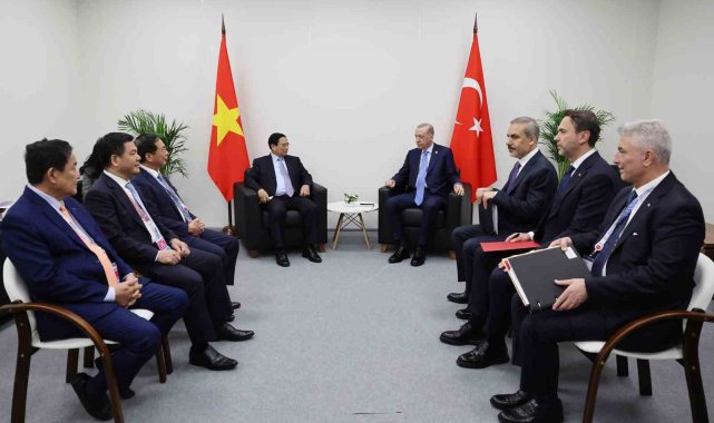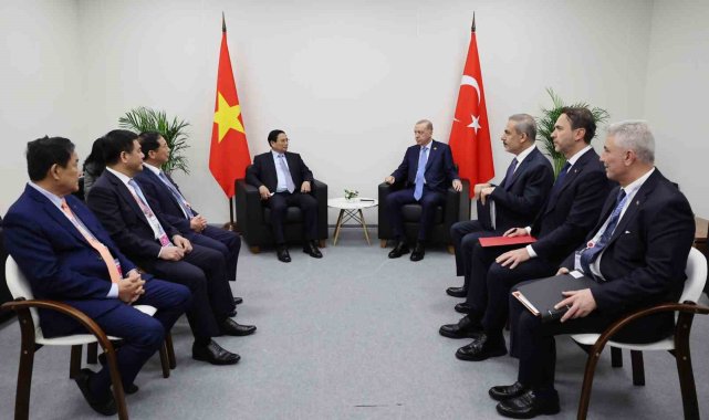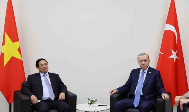 Cumhurbaşkanı Recep Tayyip Erdoğan, Kazan'da Vietnam Başbakanı Pham Minh Chinh ile görüştü.BRICS Zirvesi'ne katılma üzere Rusya'ya bağlı Tataristan'ın Kazan şehrine gelen Cumhurbaşkanı Recep Tayyip Erdoğan, temaslarına devam ediyor. Cumhurbaşkanı Erdoğan, Vietnam Başbakanı Pham Minh Chinh ile görüştü. Görüşmede, Türkiye ile Vietnam ikili ilişkileri, bölgesel ve küresel meseleler değerlendirildi.Cumhurbaşkanı Erdoğan görüşmede, Türkiye ile Vietnam arasındaki ikili ilişkilerin gelişiminin önemini belirtirken, özellikle karşılıklı ticaret hacminin artırılması için çabaların devam edeceğini ifade etti. İsrail'in uluslararası hukuka ve insan haklarına aykırı saldırılarının bütün dünyanın huzur ve istikrarına kastettiğini, ülkelerin İsrail'in bu hukuk tanımazlığına ve yayılan saldırganlığına karşı insanlık ittifakına katılmasının önemli olduğunu söyledi.
