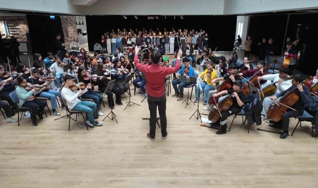 Cumhurbaşkanlığı himayesinde kurulan Cumhurbaşkanlığı Çocuk Orkestrası ve Korosu'nun, yaklaşık bin çocuk arasından seçilerek 23 Nisan'da sahne alacağı açıklandı.Cumhurbaşkanlığı himayesinde kurulan Cumhurbaşkanlığı Çocuk Orkestrası ve Korosu, 23 Nisan Ulusal Egemenlik ve Çocuk Bayramı kapsamında vereceği konser öncesinde hazırlıklarını sürdürüyor. Birinci yılını geride bırakan Cumhurbaşkanlığı Çocuk Orkestrası ve Korosu, 23 Nisan Ulusal Egemenlik ve Çocuk Bayramı'nda vereceği konserle hem kendi gelişimlerini sahneye taşıyacak hem de tüm çocuklara armağan edilen 23 Nisan'ı müzikle kutlayacak. 2024 yılında başlatılan proje kapsamında yapılan yetenek sınavlarıyla yaklaşık bin çocuk arasından seçilen öğrencilerle kurulan orkestra ve koro, bugün 300'ü aşkın öğrenciye ulaştığı belirtildi. Türk müziği ve Batı müziği enstrümanlarının bir arada yer aldığı yapının, çocuklara çok yönlü bir sanat eğitimi imkanı sunduğu ifade edildi."Çocuklarımız artık bir orkestra üyesi gibi sahne disipliniyle hareket ediyor"Projenin bir destek modeli olarak kurumlara örnek olduğunu, birçok Bakanlığın projeyi desteklediğini vurgulayan Cumhurbaşkanı Başdanışmanı Fecir Alptekin, "Başlangıçta bir eğitim ve hobi çalışması olarak görülen bu yapı, bugün disiplinli ve güçlü bir sanat topluluğuna dönüştü. Çocuklarımız artık bir orkestra üyesi gibi sahne disipliniyle hareket ediyor. Bu çocukların hepsi evlerinden alınıyor servislerle. Burada kostüm, enstrüman yeme, içme bütün ihtiyaçlar burada karşılanıyor devletimiz tarafından. Hafta sonu tatillerini de buraya ayıran Ankara Müzik ve Güzel Sanatlar Üniversitesi hocalarımızın kurduğu sistemle çalışıyoruz. İşin içinde Milli Eğitim Bakanlığı, Kültür ve Turizm Bakanlığı, Aile Bakanlığı, Gençlik ve Spor Bakanlığı da var. Çünkü hepsine düşen birer görev var. Milli Eğitim Bakanlığı hoca gönderiyor, Kültür Turizm Bakanlığı liderlik edecek sanatçılarını gönderiyor. Gençlik Spor Bakanlığı yeri geliyor ulaşım, mekan sağlıyor. Aile Bakanlığı, refakatçi hocalarını gönderiyor. Herkesin kendi uzmanlık alanında buraya sağladığı gönüllü katkılar var. Hepsinin ayrı değeri var, çok önemli" ifadelerini kullandı."Amacımız estetik bakış açısına sahip bireyler yetiştirmek"Cumhurbaşkanlığı Çocuk Orkestrası ve Korosu'nun Genel Sanat Yönetmenliği ve Koordinatörlüğünü yürüten Ankara Müzik ve Güzel Sanatlar Üniversitesi Rektör Yardımcısı Prof. Dr. Zafer Kurtaslan, projenin temel hedeflerinden birinin sanata erişimi yaygınlaştırmak olduğunu vurgulayarak, "Amacımız yalnızca sanatçı yetiştirmek değil hangi mesleği seçerse seçsin, estetik bakış açısına sahip bireyler yetiştirmek. Cumhurbaşkanlığımızın himayesinde yürütülen proje tam bir ekip çalışması" diye konuştu."Çocuklarda büyük bir istek ve öğrenme azmi görüyoruz"Projede görev alan eğitmenlerden Atay Bağcı, çocukların motivasyonuna dikkat çekerek, "Çocuklarda büyük bir istek ve öğrenme azmi görüyoruz. Bu birliktelik, gelecekte çok daha güçlü bir müzik kültürünün oluşmasına katkı sağlayacak" şeklinde konuştu.Cumhurbaşkanlığı Çocuk Orkestrası ve Korosu'nun yalnızca bir müzik topluluğu olmanın ötesinde, çocukların birlikte üretme, disiplinli çalışma ve kültürel değerlerle bağ kurma süreçlerine de katkı sağladığı vurgulandı. Projede Türk müziği eserlerine özel bir yer verilerek, kültürel mirasın yeni nesillere aktarılmasının hedeflendiği dile getirildi.