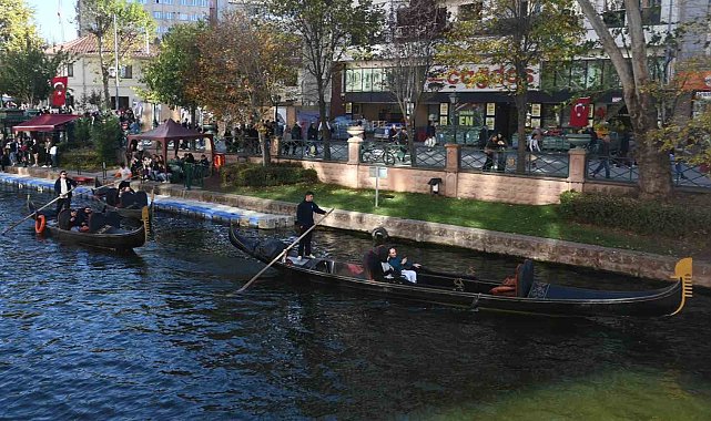 29 Ekim Cumhuriyet Bayramı tatilini Eskişehir'de geçirmek isteyen turistler, havanın da güzel olmasını fırsat bilerek Porsuk Çayı'nda gondol keyfi yapmak için yoğunluk oluşturdu.