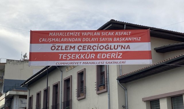 Cumhuriyet Mahallesi sakinlerinden Başkan Çerçioğlu'na pankartlı teşekkür