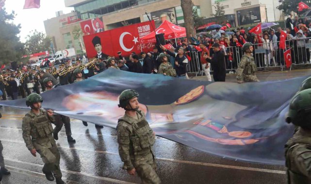 29 Ekim Cumhuriyet Bayramı'nın 102. Yıl dönümü deprem bölgesi Malatya'da coşkuyla kutlandı.İnönü Caddesi'nde düzenlenen törene Malatya Valisi Seddar Yavuz, 2. Ordu Komutanı Korgenaral Zorlu Topaloğlu, Malatya Büyükşehir Belediye Başkanı Sami Er, resmi kurum temsilcileri ile askeri ve polis erkanı katıldı. Tören, saygı duruşu ve İstiklal Marşı'nın ardından başladı.Malatya Valisi Seddar Yavuz, törende Cumhuriyet'in 102.yılı nedeniyle yaptığı konuşmada Türkiye Cumhuriyeti'nin 29 Ekim 1923'te kurulduğunu belirterek, "Bugün 102. Yılını kutladığımız Cumhuriyet, köklü tarihimiz, güçlü kültürümüz ve medeniyetimizle dünya üzerinde her geçen gün daha da güçlenmektedir. Bin yıllık vatanımız olan Anadolu, aziz şehitlerimizin kanıyla bulanmış bu mukaddes topraklalar bizlere sadece bir miras değil büyük bir sorumluluk bırakmıştır. 2 bin 200 yıllık köklü devlet geleneğimizle, milletimiz irfanı ve cesaretiyle her zaman var olmuştur. Bugün Gazi, Mustafa Kemal Atatürk ve silah arkadaşlarının büyük fedakârlıklarıyla kurulan Türkiye Cumhuriyeti Devletimizin 102.yılını coşku ve gururla kutlarken gençlerimize büyük bir görev ve sorumluluk düştüğünü bir kez daha hatırlatmak istiyorum" dedi."400 hektar alanda 69 lokasyonda inşa çalışmaları sürüyor"6 Şubat'ta Kahramanmaraş merkezli yaşanan ve Malatya'yı derinden etkileyen deprem felaketine de değinen Vali Yavuz, "6 Şubat'ta meydana gelen, Malatya'yı derinden sarsan depremler, çok sayıda kardeşimizi kaybettiğimiz ve büyük acılar yaşadığımız unutulmayacak bir dönüm noktası olmuştur. Bizler bu felakette bir ve beraber olduk, ayağa kalktık. Cumhurbaşkanımız Sayın Recep Tayyip Erdoğan'ın güçlü liderliğinde, tüm kamu kurum ve kuruluşlarımızla, Malatyalı hemşerilerimizle şehrimizi yeniden imar ve inşa etmek, depremzede kardeşlerimizi sıcak yuvalarına, güvenli işyerlerine kavuşturmak için var gücümüzle çalışıyoruz. Bugün itibariyle 47 bin 727 bağımsız bölümü, tamamlayarak kurasını çektik. Kentsel dönüşüm ve deprem konutları dahil olmak üzere toplam 103 bin 464 bağımsız bölümün inşa ediyoruz. Şehrimizin merkezinde ise 400 hektar alanda 69 lokasyonda 38 bin 639 bağımsız bölümü inşa ediyoruz" diye konuştu.Vali Yavuz'un konuşmasının ardından çeşitli alanlarda dereceye giren öğrencilere ödülleri verildi. Tören, askeri, polis ve resmi kurumların geçişi ile son buldu.