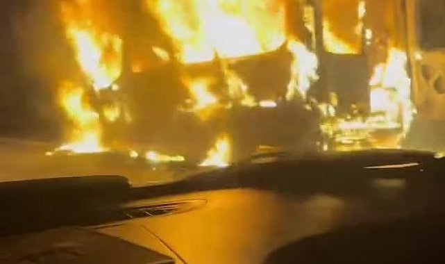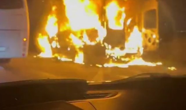 Sakarya'nın Hendek ilçesi D-100 kara yolunda işçileri taşıyan servis aracı alev alev yandı. Herhangi bir can kaybı veya yaralananın olmadığı yangında midibüs hurdaya döndü.