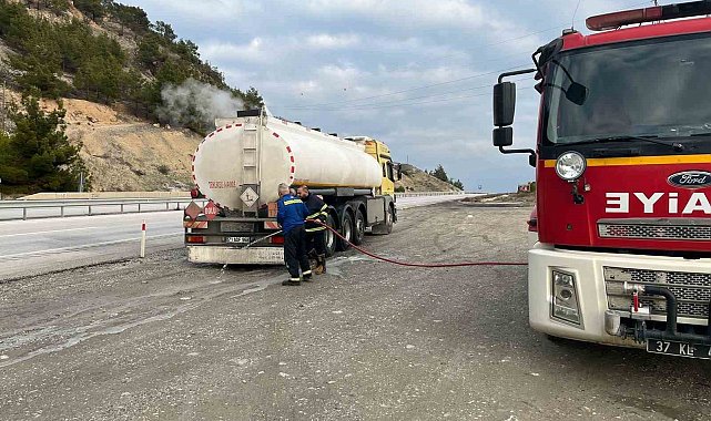 Kastamonu'nun Tosya ilçesi D100 karayolunda seyir halindeki tankerde çıkan yangın sürücü ve itfaiye ekiplerinin hızlı müdahalesi ile büyümeden söndürüldü.Olay, Tosya ilçesi D100 karayolu İstanbul istikametinde meydana geldi. Edinilen bilgiye göre, 71 ADF 968 plakalı tankerin lastik kısmında bilinmeyen sebeple yangın çıktı. Araçtan yükselen dumanları fark eden sürücü, hızla aracı durdurarak yangına kendi imkanlarıyla müdahale etti. İhbar üzerine bölgeye polis ve itfaiye ekipleri de sevk edildi.Olay yerine gelen ekipler tarafından araçta soğutma çalışması yaptı. Yanıcı madde taşıdığı öğrenilen tankere sürücü ve ekipler tarafından yapılan hızlı müdahale sayesinde ihtimal faciayı önledi.