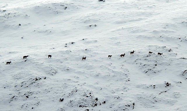 Erzincan'da Munzur Dağlarının karlı zirvelerinde dağ keçileri görüntülendi.Erzincan ile Tunceli arasındaki platoda 130 kilometre uzunlukta batıdan doğuya uzanan Munzur Dağlarında çok sayıda dağ keçisi görüntülendi. 3 bin 300 rakımlı Munzur Dağlarının karlı zirvesinde ve zaman zaman da bin rakımlı aşağı kısımlara inen çengel boynuzlu (şamua) ve dağ keçileri sürüler halinde görüntülendi. Dağ keçileri, karlar üzerinde bir süre gezinip gözden kayboldu.Avlanması yasak ve koruma altındaki tür olan dağ keçileri, Dünya Doğa Koruma Birliğinin (IUCN) yayımladığı Nesli Tükenme Tehlikesi Altında Olan Türlerin Kırmızı Listesi'nde bulunuyor.İstanbul'dan Erzincan'a gelen Suzan Ağgül, "Burası çok güzel. Yaban hayatı oldukça zengin. Dağ keçilerini izlemek keyifli oluyor" dedi.