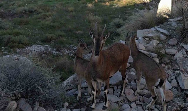 Erzurum'un Tortum ilçesine bağlı Pehlivanlı Mahallesi yolu üzerinde dağ keçileri ve yavruları görüntülendi.Pehlivanlı Mahallesi yolu üzerinden geçen meraklı vatandaşlar dağ keçilerini yakından izleme fırsatı buldu. Yerleşim yerine çok yakın bir noktada görüntülenen keçiler, bir süre burada kaldıktan sonra gözlerden kayboldu.