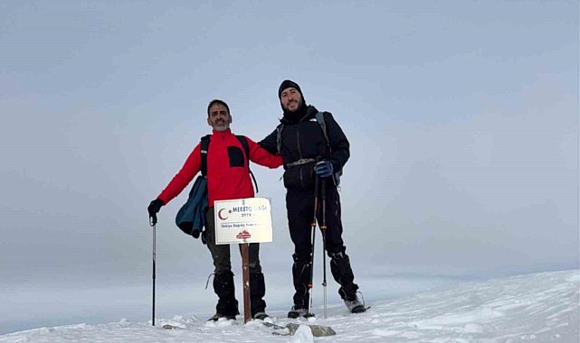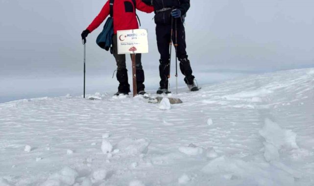 Dağcılar karla kaplı Mereto Dağı'nın zirvesine tırmandı