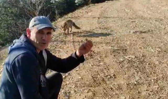 Dağda karşılaştığı tilkiyi çerezle besledi