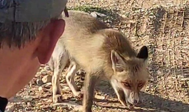 Kahramanmaraş'ta bir vatandaş, yaptığı doğa yürüyüşü sırasında karşılaştığı tilkiyi kuru yemişle besledi. O anları cep telefonuyla da görüntüledi.
