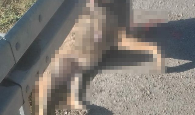 Demir bariyere iple asılı halde telef olmuş kurt bulundu