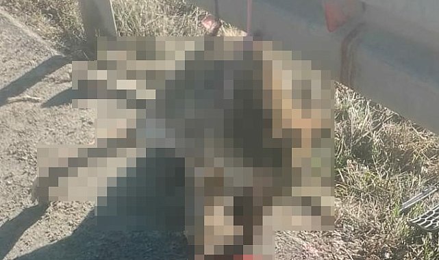 Bolu'da yol kenarında demir bariyerlere asılı halde telef olmuş kurt bulundu.