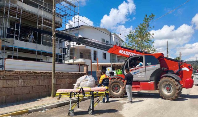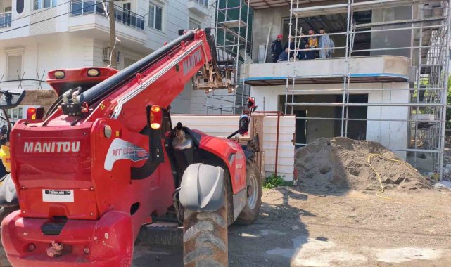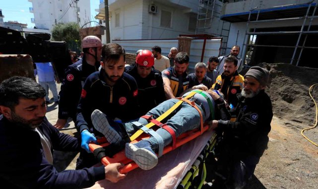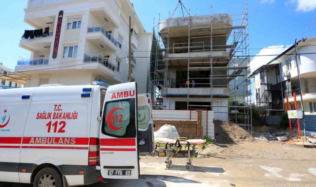 Antalya'da inşaat iskelesinden üst kata çıkarken düşerek yaralanan işçi itfaiye ekiplerince vinçle bulunduğu yerden kurtarıldı.