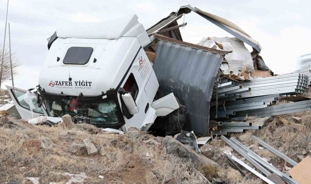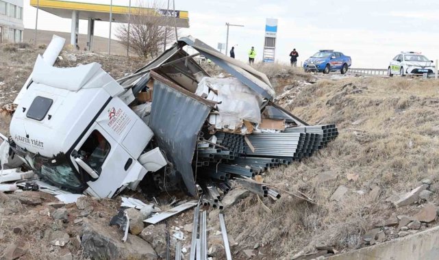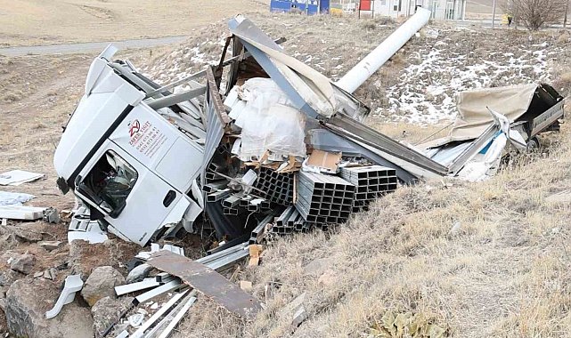 Aksaray'da demir profil yüklü tırın şarampole devrilmesi sonucu meydana gelen trafik kazasında sürücü ağır yaralandı.