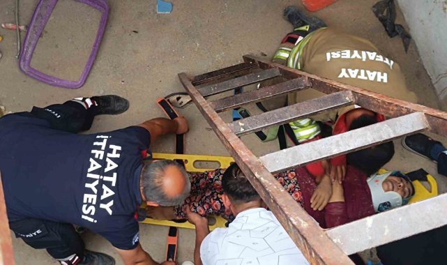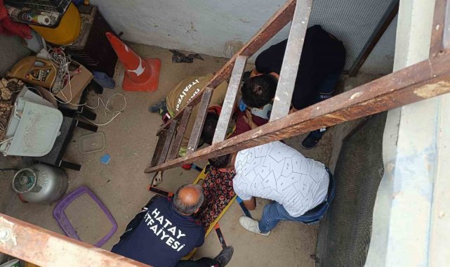 Hatay'da demir saçın çökmesiyle çatıdan düşen kadın yaralı olarak hastaneye kaldırıldı.