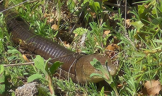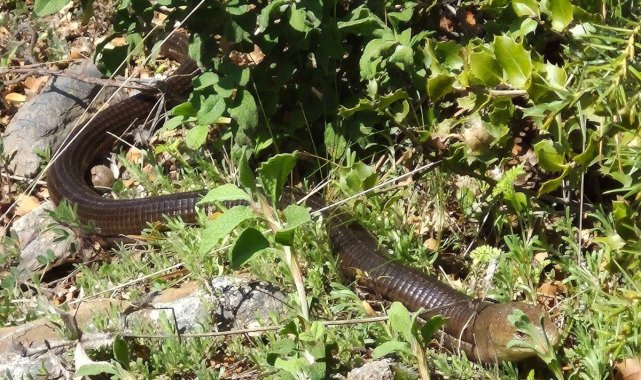 Denizli'de halk arasında "demir yılan" olarak bilinen oluklu kertenkele, Bozkurt İlçesine bağlı İnceler Mahallesi'nde görüntülendi.
