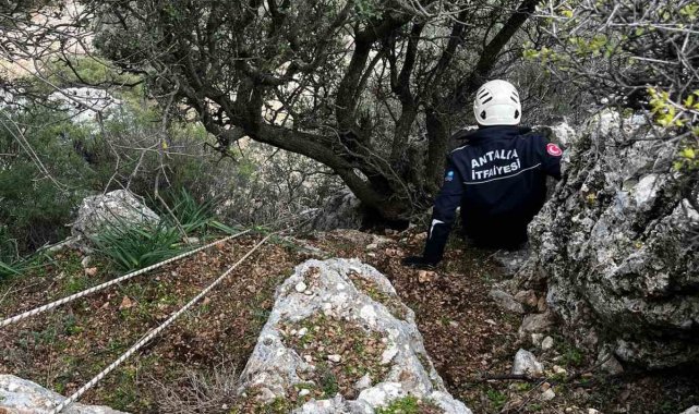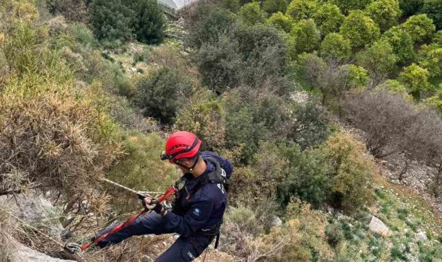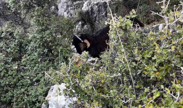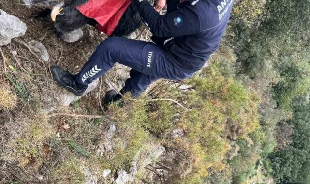 Demre'de 300 metrede 3 gündür mahsur kalan keçi operasyonla kurtarıldı