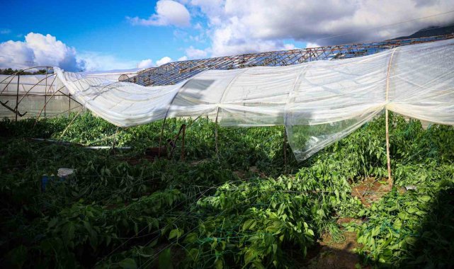 Demre'de dolu yağışıyla zarar gören seralar tespit ediliyor