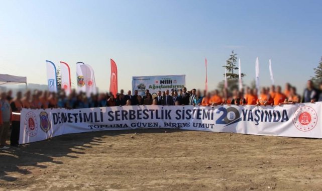 Denetimli serbestlik ve yükümlüleri, 11 Kasım Milli Ağaçlandırma Günü dolayısıyla Atatürk Orman Çiftliği'nde fidan dikti.Denetimli serbestlik uygulamalarından biri olan kamuya yararlı bir işte ücretsiz olarak çalıştırılma yükümlülüğü, diğer bir ifadeyle kamu hizmeti cezası, çevreye ve topluma katkı sağlamayı hedefleyen bir etkinlik gerçekleşti. Kamu hizmeti cezası yükümlülüğünü yerine getiren denetimli serbestlik ve yükümlüleri, 11 Kasım Milli Ağaçlandırma Günü dolayısıyla düzenlenen fidan dikim etkinliğinde, 'Geleceğe nefes, insanlığa nefes' sloganıyla yüzlerce fidanı toprakla buluşturdu.Çevreye katkı, topluma kazandırmaDenetimli serbestlik müdürlüklerince yürütülen, kamuya yararlı bir işte ücretsiz olarak çalıştırılma yükümlülüğü, kamu hizmeti cezası, birçok kurum ve kuruluşla iş birliği içinde etkin bir şekilde uygulanıyor. Özellikle fidan dikimi, ormanların bakımı ve hatıra ormanlarının oluşturulması gibi çevre odaklı faaliyetler, bu cezanın infaz sürecinde yer alıyor. Bu uygulamalar, cezanın sadece bir yaptırım olmaktan çıkıp, toplumsal fayda üreten, sürdürülebilir ve yapıcı bir sürece dönüşmesi sağlanıyor.Bu çalışmalar aracılığıyla, yükümlü ve hükümlülerin toplumsal sorumluluk ve çevre bilincinin geliştirilmesi, topluma yeniden entegrasyon süreçlerine aktif olarak katılmaları hedefleniyor.Protokol ve yükümlülerin katılımıyla törenBu anlayış doğrultusunda, 11 Kasım Milli Ağaçlandırma Günü etkinlikleri çerçevesinde Ankara'nın simge mekanlarından Atatürk Orman Çiftliği Ağaçlandırma Sahası'nda büyük bir fidan dikim töreni gerçekleştirildi.Etkinliğe, Ankara Cumhuriyet Başsavcı Vekili Vural Balcı, Ankara Cumhuriyet Savcısı Sema Sonay Gökşen ve Ankara Batı Cumhuriyet Savcısı Sabiha Gürsoy'un yanı sıra, denetimli serbestlik müdürlükleri, açık ceza infaz kurumu yetkilileri ve personeli de etkinliğe katıldı. Kamu hizmeti yükümlülüğünü yerine getiren yükümlü ve hükümlü vatandaşlar da etkinliğin merkezinde yer alarak fidanlarını bizzat dikti.Geleceğe umut olan fidanlar toprakla buluştuKatılımcılar, hep birlikte kürek sallayarak geleceğe umut olacak yüzlerce çam, meşe ve çeşitli türdeki fidanı dikti.