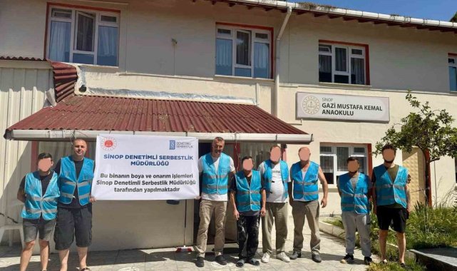 Denetimli serbestlik yükümlüleri, yaz tatilinde Sinop'taki okullarda boya ve temizlik çalışmaları yaparak eğitime destek oluyor.