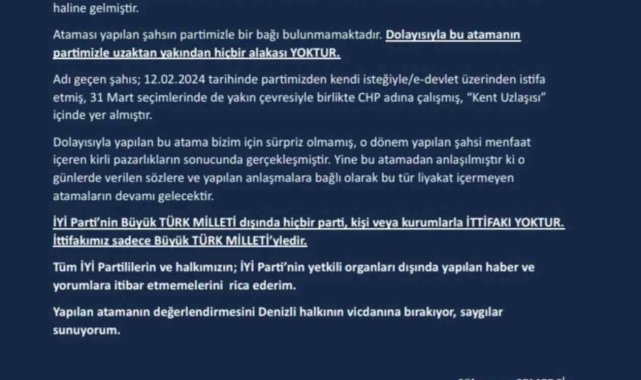 Denizli Büyükşehir Belediyesindeki atama CHP ve İYİ Parti'yi karşı karşıya getirdi