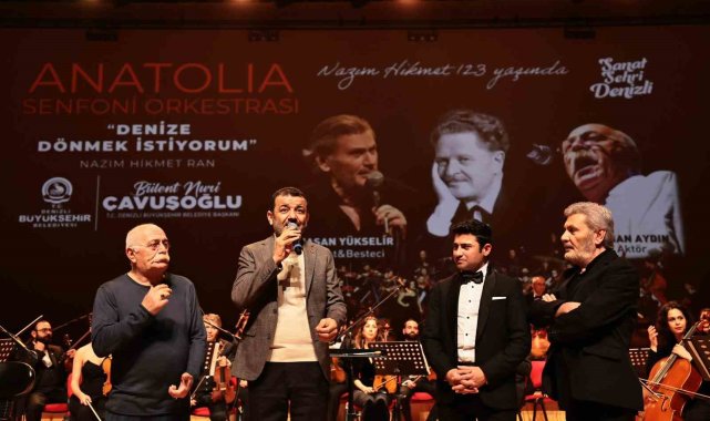 Denizli Büyükşehir Belediyesi tarafından gerçekleştirilen "Denize Dönmek İstiyorum" adlı gösteriyle Türk edebiyatının unutulmaz şairi Nazım Hikmet, 123'üncü doğum yıldönümünde anıldı. Nihat Zeybekci Kongre ve Kültür Merkezi Özay Gönlüm Salonu'nda düzenlenen etkinlik, sanatseverlerden yoğun ilgi gördü.Türk edebiyatının usta isimlerinden Nazım Hikmet, Denizli Büyükşehir Belediyesi tarafından düzenlenen "Denize Dönmek İstiyorum" etkinliği ile 123'üncü doğum yıldönümünde anıldı. Programa Denizli Büyükşehir Belediye Başkanı Bülent Nuri Çavuşoğlu, Başkanvekili Ali Marım, Genel Sekreter Bülent Bozbaş ve çok sayıda davetli katıldı. Anatolia Senfoni Orkestrası'nın sahne aldığı programda, Nazım Hikmet'in eserleri müzikle buluşturuldu. Şef Gökmen Fahlıoğulları yönetimindeki orkestra, unutulmaz bir performansa imza attı. Solist ve besteci Hasan Uçkan'ın eşsiz yorumu, izleyicileri adeta büyüledi. Programda, usta aktör Orhan Aydın da Nazım Hikmet'in şiirlerini seslendirerek duygu dolu anlar yaşattı. Dinleyiciler, hem müzik hem de şiirle dolu bu özel gecede unutulmaz bir deneyim yaşadı."Denizli'yi sanatıyla ayağa kalkmış bir şehir haline getireceğiz"Programın açılış konuşmasını gerçekleştiren Denizli Büyükşehir Belediye Başkanı Bülent Nuri Çavuşoğlu, sözlerine Nazım Hikmet'in "Davet" şiirinden bir dize okuyarak başladı. Denizli'yi sanatıyla ayağa kalkan bir şehir haline getirmek istediklerini ifade eden Başkan Çavuşoğlu konuşmasının devamında, "Nazım Hikmet'in dediği gibi, "Yaşamak bir ağaç gibi, hür bir orman gibi kardeşçesine". Nazım Hikmet'in doğum yıldönümü için hepimiz bu etkinlikte toplandık. Bu şehri sanatla, mutlulukla ve herkesin yüzünün güldüğü bir şehir haline getireceğiz. Bu şehrin mutluluğu, insanların mutluluğu, insanların yüzünün gülmesi bizlerin çalışma azmini ve motivasyonunu arttırır. Biz istiyoruz ki bu şehir tarımıyla, turizmiyle, hayvancılığıyla, sanatıyla ayağa kalkmış bir şehri hep birlikte başaralım" ifadelerini kullandı.
