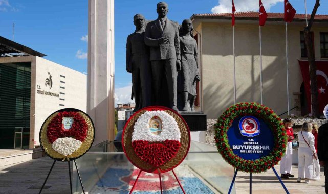 Denizli'de Cumhuriyetin 102. yıldönümü kutlamaları çelenk sunumuyla başladı