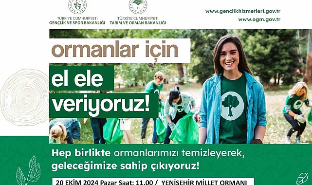 Gençlik ve Spor Bakanlığı koordinasyonu, , Tarım ve Orman Bakanlığı iş birliğiyle 20 Ekim Pazar günü Türkiye genelinde gençler ve gönüllülerin katılımıyla eş zamanlı orman temizliği yapılacak.