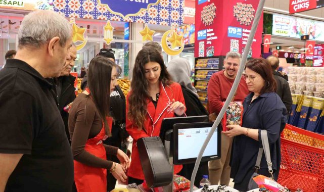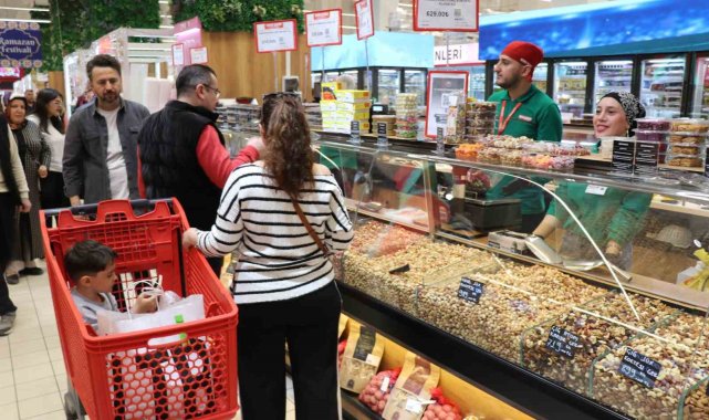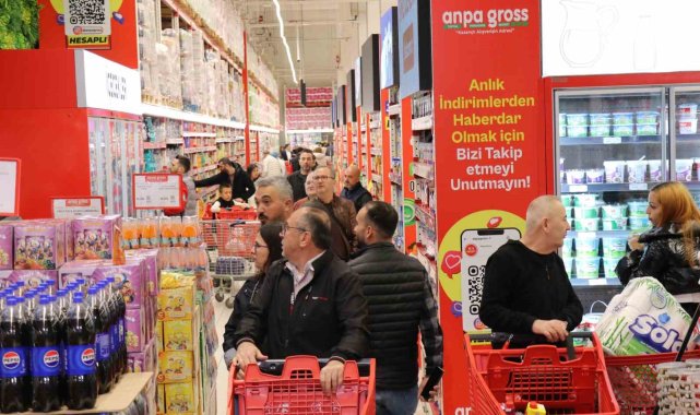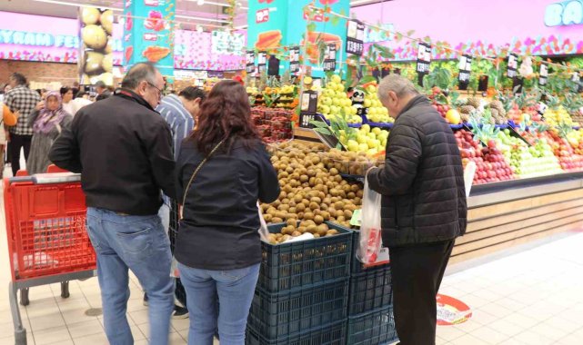 Denizli'de Ramazan Bayramına sayılı günler kala indirim kampanyalarına devam eden alışveriş merkezlerinde büyük yoğunluk yaşanıyor. Ramazan ayı ve yaklaşan bayram nedeniyle şeker, çikolata ve tatlı başta olmak üzere manav ve et ürünlerindeki cazip fiyatlar vatandaşların yoğun ilgisine neden oluyor.Denizli'de bayram alışverişini ekonomik hale getirmek isteyen vatandaşlar, indirim kampanyalarına devam eden alışveriş merkezlerinde yoğunluk oluşturdu. Ramazan ayı boyunca süren indirimli satış geleneğini bayram süresince de devam ettirme kararı alan market yönetimi; özellikle bayramın vazgeçilmezi olan şekerleme grupları ile temel gıda maddeleri olan kırmızı ve beyaz et reyonlarında büyük fiyat avantajları sundu. Manav reyonunda da taze ürünlerin uygun fiyatla raflarda yer almasıyla birlikte market içerisinde adeta adım atacak yer kalmadı. Bayram sofralarını donatmak isteyen Denizlililer, marketin sunduğu bu fırsatlara yoğun ilgi göstererek uzun kuyruklar oluşturdu. Bayram öncesi alışverişini uygun fiyatlarla yapmak isteyen çok sayıda vatandaşın akın ettiği markette zaman zaman yoğunluk yaşandığı gözlendi."Denizli halkı kazanmaya devam ediyor"Denizli halkının ger zaman yanında oldukları vurgusunda bulunan Anpagross Mağaza Müdürü Hakan Durmuş, "Anpagross market olarak Denizli'ye farklı bir değer katmaya geldik. Denizli halkının cebine fazladan ürünler koymaya çalıştık. Denizli halkı kazansın istedik. Şeker grubunda piyasanın çok altında satış yapıyoruz. Büyük bir talep var. Vatandaşlarımız bizi talep ediyorlar. Manav reyonunda indirimimiz var. Ramazan festivali kapsamında büyük bir kampanya yaptık. Şimdi de bayram festivali gerçekleştiriyoruz. Bu şekilde Denizli halkı kazanmaya devam ediyor. Tüm Denizli halkının bayramını şimdiden kutluyorum" dedi.İndirim yoğunluğundan vatandaşlar memnunEşiyle bayram alışverişi yapmaya gelen Sedat Akar, "Anpagross marketin indirimleri çok güzel oluyor. Bu yüzden memnunuz. Özellikle şeker almaya geldim. Eşim şekeri çok seviyor. Bende tatlıyı seviyorum. Şimdi de baklava almaya gidiyoruz" diye konuştu.Vatandaşların genel olarak fiyatlardan memnun olduğuna dikkat çeken Rıdvan Akar, "Bayram alışverişi için geldik. Anpagross markeri beğeniyoruz. Ucuzluk olarak Denizli halkına güzel bir fırsat sundular. Bayramlık alışverişimizi yapacağız. Fiyatlar çok uygun, herkes de memnun" diye konuştu.Piyasaya göre fiyatların uygun olduğuna dikkat çeken Yasemin Özdemir, "Fiyatlar gayet uygun, iyi. Elimdeki şekerin kilosu 180 TL. Gayet de iyi. Bir haylide yoğunluk var" ifadelerini kullandı.