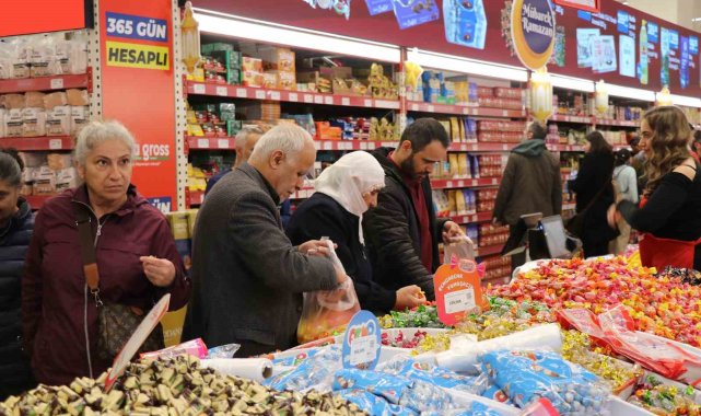 Denizli'de Ramazan Bayramına sayılı günler kala indirim kampanyalarına devam eden alışveriş merkezlerinde büyük yoğunluk yaşanıyor. Ramazan ayı ve yaklaşan bayram nedeniyle şeker, çikolata ve tatlı başta olmak üzere manav ve et ürünlerindeki cazip fiyatlar vatandaşların yoğun ilgisine neden oluyor.