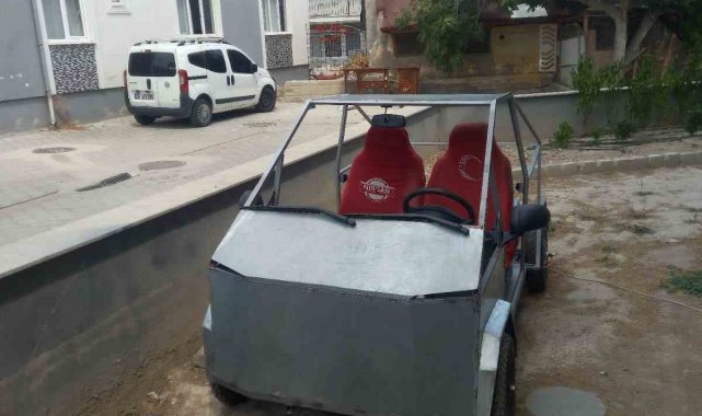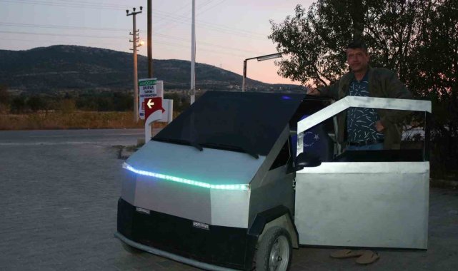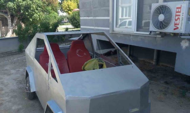 Denizli'de Elon Musk'a taş çıkaran vatandaş, Tesla'nın Cybertruck videolarından ilham alarak, boş vakitlerinde hurda malzemeleri değerlendirip evinde tek kişilik elektrikli bir pick-up üretti.