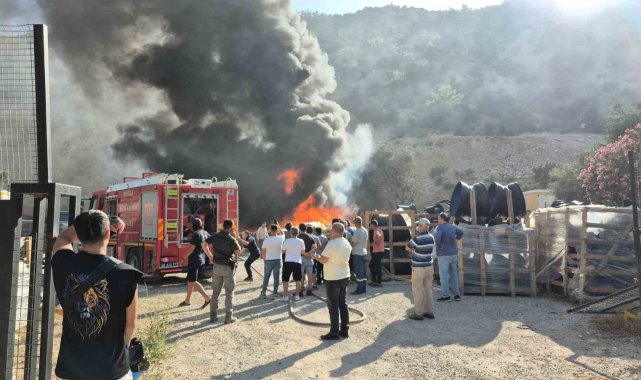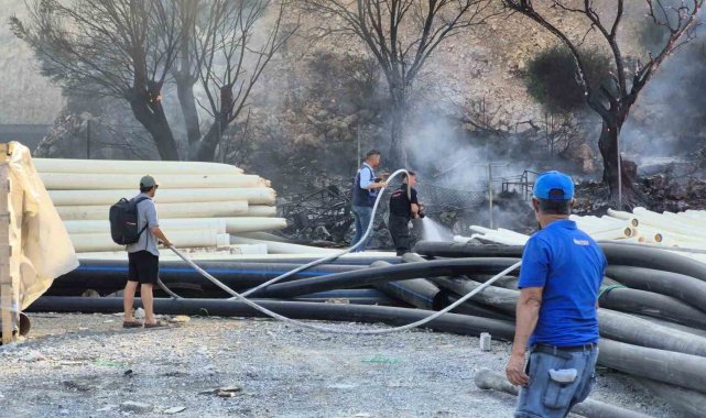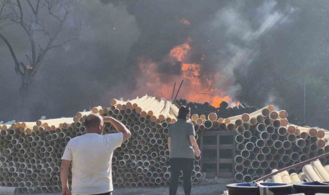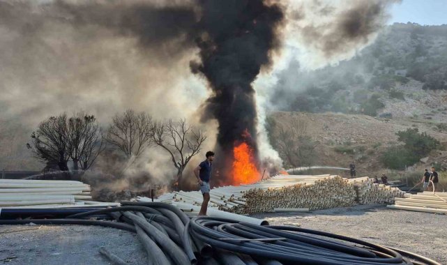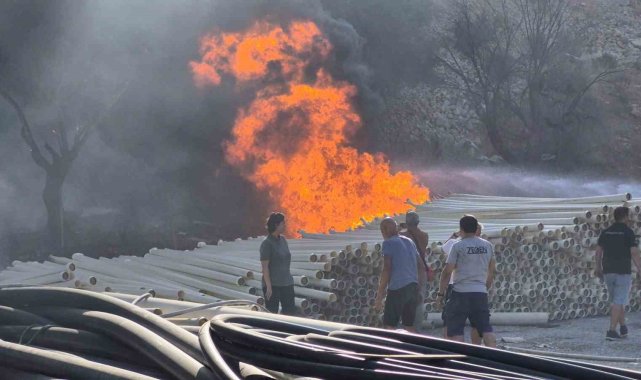 Muğla'nın Bodrum ilçesinde depolama alanındaki plastik borular, alevlere teslim oldu. Yangın, ekiplerin müdahalesiyle söndürüldü.