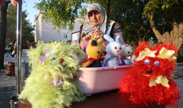 Elazığ'da yaşayan 3 çocuk annesi 66 yaşındaki İmla Çelik, 2020 Elazığ depreminde evini kaybetmesinin ardından yaşadığı travma ve yakalandığı meme kanserini, amigurumi yaparak unutmaya çalışıyor.Elazığ'da yaşayan 3 çocuk annesi 66 yaşındaki İmla Çelik, 2020 Elazığ depreminde evini kaybetti. Ardından meme kanserine yakalanan ve bir operasyon geçiren Çelik, tedavisine devam ediyor. Önce evini kaybeden ve ardından kanserle mücadelesini sürdüren Çelik, yaşadığı sıkıntıları unutmak için pandemi döneminde Halk Eğitim Merkezinde bulunan hocalarla iletişime geçerek amigurimi sanatını yapmaya başladı. Çelik'in ürünleri rağbet görünce hafta sonları tarihi Harput Mahallesi'ne gelerek kendi açtığı tezgahta yaptığı ürünleri satmaya başladı. Tezgahın başında bir yandan ürün yapan diğer yandan da satışını gerçekleştiren Çelik, hem stresten uzaklaşıyor hem de ev ekonomisine katkı sağlamanın gururunu yaşıyor.Depremzede olduğunu belirten 3 çocuk annesi İmla Çelik, "2020 Elazığ depreminde evimiz yıkıldı. Pandemi döneminde evde sıkıldığımdan dolayı bu işe başladım. Kendi rahatsızlığım da var el işi yapınca rahatlıyorum. Benim için bir terapi gibi oluyor. Halk Eğitim Merkezinde Ayfer hocamızın tavsiyesiyle bu işe başladım. 5 yıldır bu işi yapıyorum. Hem stres atıyorum hem de harçlığım oluyor. Yaptığım ürünleri satmak için hafta sonları Harput Mahallesi'ne geliyorum. Kimi gün 2 tane kimi gün de 5 veya 10 tane satıyorum. Nasip kısmet bu işler. Öğle namazını kılıp buraya geliyorum. Burada bir yandan yapıyorum bir yandan da satıyorum. Ürün olarak burada bebek ve çocuk oyuncakları yapıyorum. Yaptığım ürünlerde ahtapot ördek başta olmak üzere çocukların sevdiği ürünleri yapıyorum. Kötü günler geçti. Rabbim devletimizden razı olsun. Evimiz yıkılmıştı, TOKİ konutumuzu verdiler. Bunlarla uğraşınca o kötü günleri unutuyorum. Aynı zamanda ben de kanser hastasıyım. Göğsümden birisi alındı. Daha çok onun için bu işleri yapıyorum. Ailem de sağ olsun bana yardımcı oluyor. Çok şükür yine de canımıza bir şey olmadı malımız gitti. Hem de kanser rahatsızlığım vardı, bunları yaparak o anları unutuyorum. Ben mutlu olduğum için eşim de gelip bana yardım ediyor. Kanser hastalığım için tedavi görüyorum" dedi.