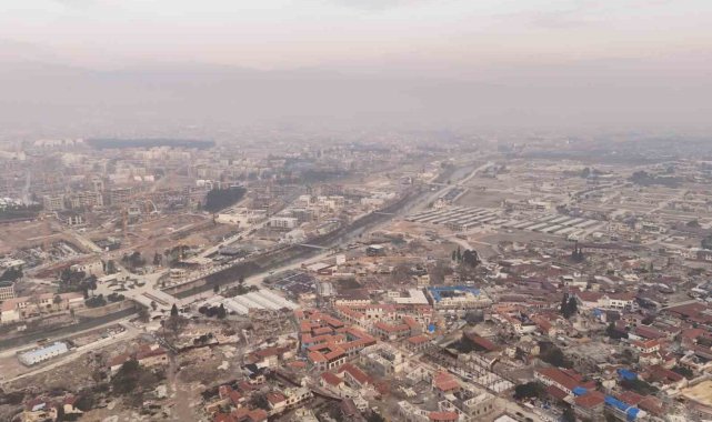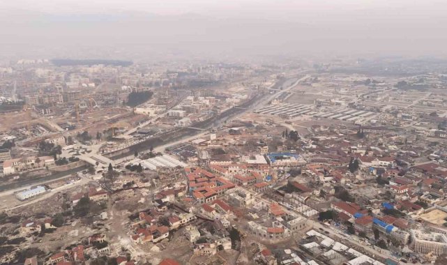 Tüm Türkiye'yi yasa boğan 6 Şubat depremlerinden en çok etkilenen Hatay kent merkezinde, 2 yıl sonra yeniden binalar yükselerek yaralar sarılmaya devam ediyor. Havadan çekilen görüntülerde kent merkezinde yüzlerce binanın aynı anda yapıldığı onlarca vincin çalıştığı görülüyor.6 Şubat 2023'te meydana gelen merkez üsleri sırasıyla Kahramanmaraş'ın Pazarcık ve Elbistan ilçeleri olan 7,8 ve 7,5 büyüklüklerindeki iki deprem tüm Türkiye'yi derinden etkiledi. Depremler sonucunda Türkiye'de resmi rakamlara göre 53 bin 537 vefat ederken, 107 bin 213 kişi de yaralandı. Depremden kısa süre sonra yaralar sarılmaya başlandı. Depremin 2 yıl dönümü yaklaşırken Hatay genelinde belediye binası yakınında ağır hasarlı olan binalar yıkılıp yerlerine yenileri yükseliyor. Havadan çekilen görüntülerde şehirde aynı anda onlarca vinç çalıştığı görüntülere yansıdı. Konteyner kentlerde ise hayat devam ederken, çadırlar ise kaldırıldı. Depremde hurdaya dönen araçlar ise şehrin merkezinin girişinde toplanıp araç mezarlığında bekletiliyor. Şehrin yaraları sarılırken, kent depremin 2. yılında tekrar eski görüntüsüne adım adım yaklaşıyor.