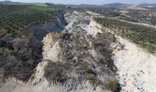 Depremin büyüklüğünü gösteren tarladaki devasa yarık, görenlere 6 Şubat'ta yaşadıklarını hatırlatıyor