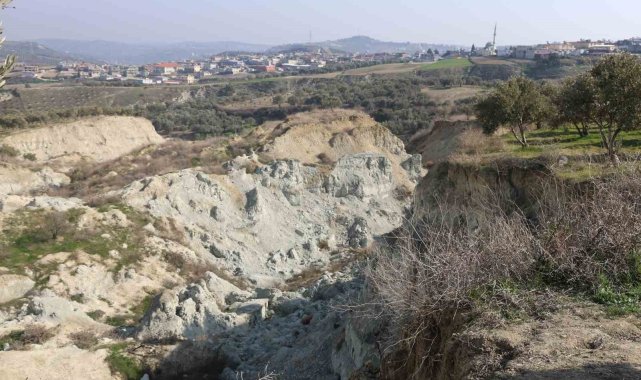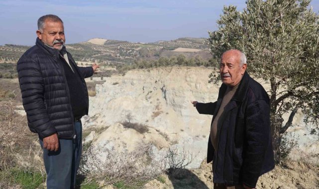 Hatay'da depremde kırılan fay hattının ikiye ayırdığı 33 dönümlük tarlayı gören vatandaşlar, 6 Şubat'ta yaşadıkları aynı korku ve endişeyi hissettiklerini belirtti.Kahramanmaraş merkezli depremlerde Hatay'ın Altınözü ilçesi Tepehan Mahallesi'ndeki 33 dönümlük zeytin bahçesi ortadan ikiye ayrılmıştı. Devasa yarığın oluştuğu bahçede 2 uçtaki ağaçların arasında neredeyse 300 metrelik mesafe meydana gelmiş ve 200 ağaç da yarık içerisinde kalarak heba olmuştu. Mahallede yaşayan vatandaşlar, asrın felaketinin üzerinden 2 yıl geçmesine rağmen görünümüyle ürküten devasa yarığı gördüklerinde aynı korku ve endişe hissettiklerini belirtti."Depremin şiddeti ortada duruyor ve bu tarlaya 100 varil bomba atsan bu hale gelmezdi"Bu tarlaya 100 varil bomba atılsa bu hale gelmeyeceğini ifade eden Bekir Hacıömeroğlu, "Burayı gördüğümüzde şok olduk. Tarih boyunca büyüklerimizden böyle bir deprem olduğunu görmedik dediler. Bu depremde tarla göründüğü gibi yer yerinden oynadı. Deprem esnasında buradan ben görmedim ama duyduğuma göre bazıları buradan yeşil dumanların çıktığını söylediler. Bu depremi unutamıyoruz ki sadece yaşayan bilir. Depremi hem unutamıyoruz hem de burayı görünce tekrardan aynı şeyleri yaşıyoruz. Bu asırların afetiydi ve normal bir deprem değil. Belli bir yaşta depremleri gördük ama böyle bir deprem ne gördük ne de duyduk. Depremin şiddeti ortada duruyor. Bu tarlaya 100 varil bomba atsan bu hale gelmezdi" dedi."Bu yarığı görünce 6 Şubat'taki aynı endişe ve korku içerisinde oluyoruz"Burayı görünce 6 Şubat'taki aynı endişe ve korkuyu yaşadıklarını dile getiren Halit Kandemir, "Deprem gecesinde bu hale geldi. Deprem saatinde buradan yeşil dumanlar çıktığını görmedik ama duyduk. Ben babamın büyüklerini bilirim ama böyle bir şey duymadık. Buraları görenler şok oluyorlar. Korkuyoruz ve yarık düz gitseydi mahalleyi yok ederdi. Bu yarığı görünce tekrardan 6 Şubat'ı yaşıyoruz. Allah böyle bir şey göstermesin. 6 Şubat'ta aynı endişe ve korku içerisinde oluyoruz" ifadelerini kullandı.