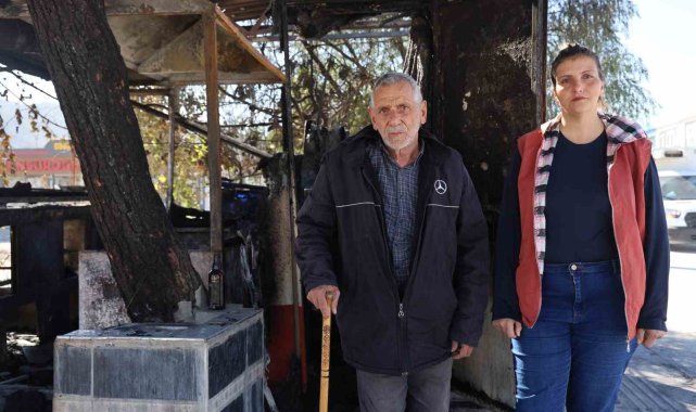 Hatay'ın Antakya ilçesinde esnaf Süleyman Küpeli'ye ait prefabrik iş yeri, alev alev yanarak kullanılamaz hale geldi.Yangın, geçtiğimiz günlerde Antakya ilçesi Haraparası Mahallesi'nde yaşandı. Alevlere teslim olan prefabrik büfeyi fark eden vatandaşlar durumu itfaiye ekiplerine bildirdi. İhbar üzerine olay yerine polis ve itfaiye ekipleri sevk edildi. Kısa sürede bölgeye gelen itfaiye ekiplerinin çalışmaları sonucunda yangın söndürüldü. 40 yıldır esnaflık yapan depremzede Süleyman Küpeli'ye ait iş yeri yanarak kullanılamaz hale geldi."Bugün de açmaya karar vermiştik ama açamadık"40 yıldır iş yerinde esnaflık yapan Süleyman Küpeli, "40 yıllık dükkanımı, iş yerimi yaktılar. İş yerimi kim yaktı gerçekten bilmiyorum. Bugün de açmaya karar vermiştik ama açamadık. Ekmek teknemiz yandı kül oldu" dedi.Büfenin yandığını görünce yaşadıklarını anlatan Özlem Arslan, "Burası bizim büfemizdi. Bize saat 16.00 sularında haber verdiler. Büfeniz yanıyor koşun yetişin dediler. Büfenin yanına geldik gördüğümüze inanamadık. Ben şaka zannettim kuzenimi aradım ve kuzenim de ağlayarak 'evet doğru büfeniz yanıyor' dedi. Büfenin yanına geldiğimizde gördüğümüz olayla şok içinde kaldık. Kim bu büfeyi nasıl oldu gerçekten bilmiyoruz. Etraftan şüpheli 3 kişinin olduğunu söylediler. Büfemizi yakandan şikayetçi olduk. Bir depremzede olarak gerçekten mağduruz" ifadelerini kullandı.