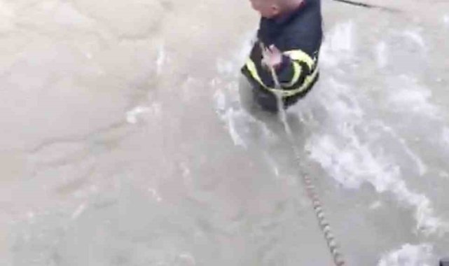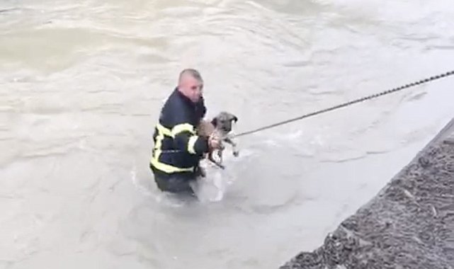 Dereye düşen köpeği boğulmaktan itfaiye ekipleri kurtardı