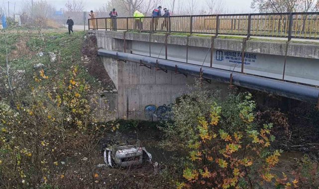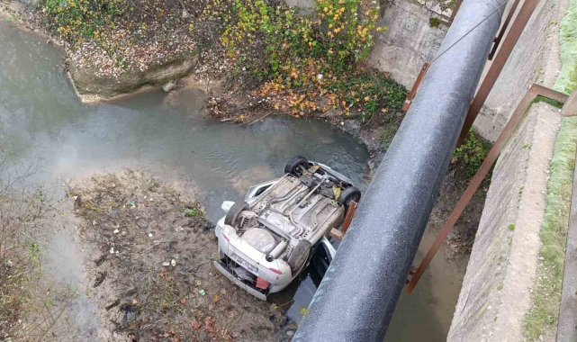 Bursa'nın İnegöl ilçesinde meydana gelen kazada otomobil dereye uçtu; sürücüsü yaralandı.