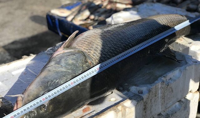 Erzincan'da yakalanan 33 kilo ağırlığındaki dev Turna balığı tezgâhta satışa sunuldu.Fırat balığı alıp satan esnaf Sinan Atasever bu kez dev Turna balığını tezgâhında sergileyerek satışa çıkardı. Yoldan geçen vatandaşlarda dev balığı büyük bir ilgi ile izledi. Yaklaşık 33 kilo ve 1,5 metre uzunluğunda olan balığın etrafında toplanan vatandaşlar şaşırdı. İlk defa dev bir balık gördüklerini söyleyen vatandaşlar ağzını açarak dikkatle inceledikleri balığın fotoğraf ve videosunu çekerek anı ölümsüzleştirdi.Esnaf Sinan Atasever, "Bu balık Karasu nehrinde yakalandı. Kesip satıyoruz alıcısı da var. Daha büyükleri de var bu balıkların. Ama tutulma şansları yok." ifadelerini kullandı.Turna balığının kilosu 250 TL'den satışa sunuldu.