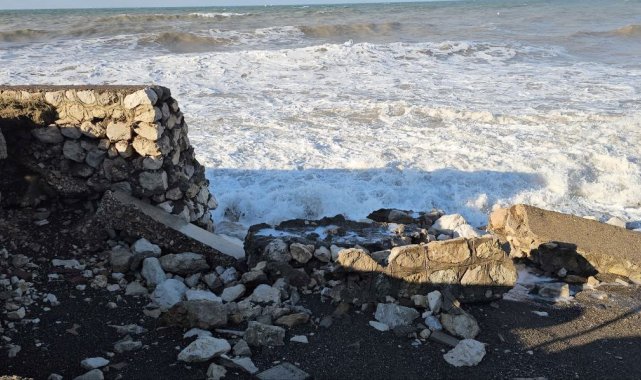 Kastamonu'nun Cide ilçesi kıyılarında etkili olan fırtına nedeniyle oluşan dev dalgalar, sahil şeridine zarar verdi.