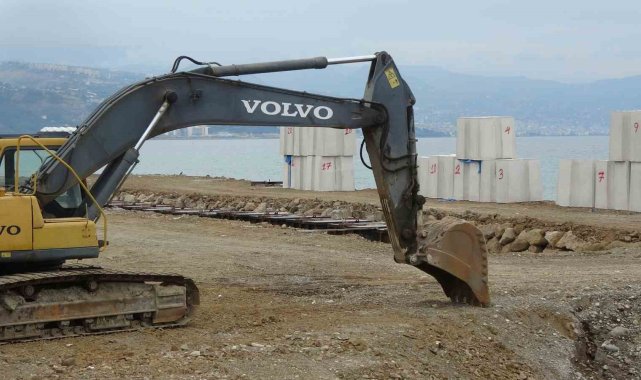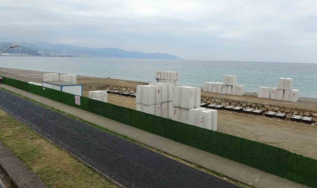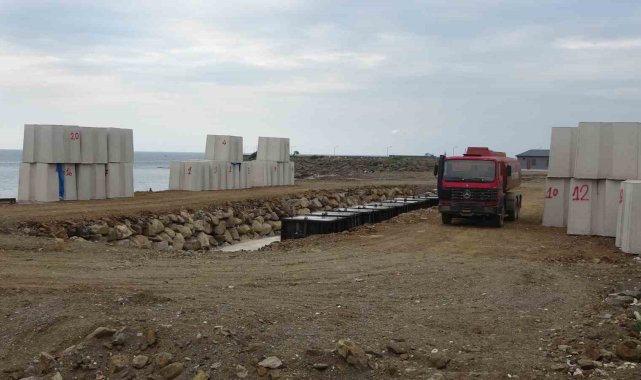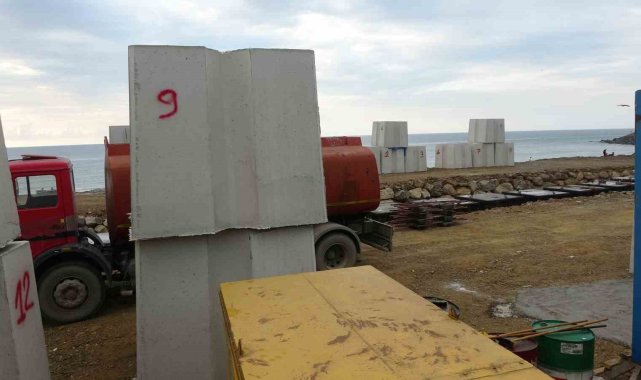Trabzon'un önemli balıkçı limanlarından Faroz Limanı'nın dev dalgalardan etkilenmemesi için limanın deniz tarafına döşenecek olan dev betonların imalatına başlandı.