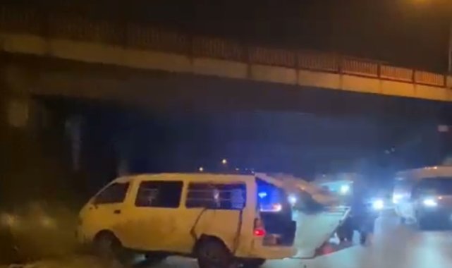 Devrilen minibüsün sürücüsü ağır yaralandı