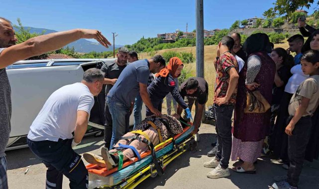 Devrilen otomobildeki 1 kişi yaralandı