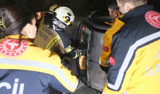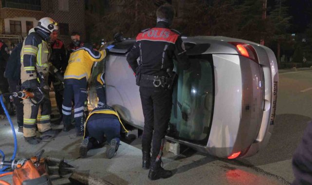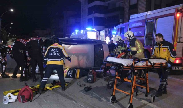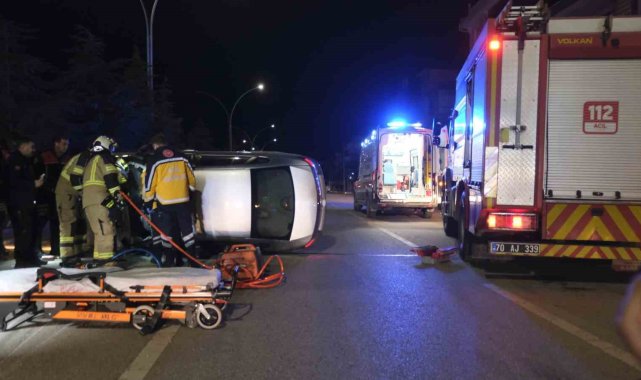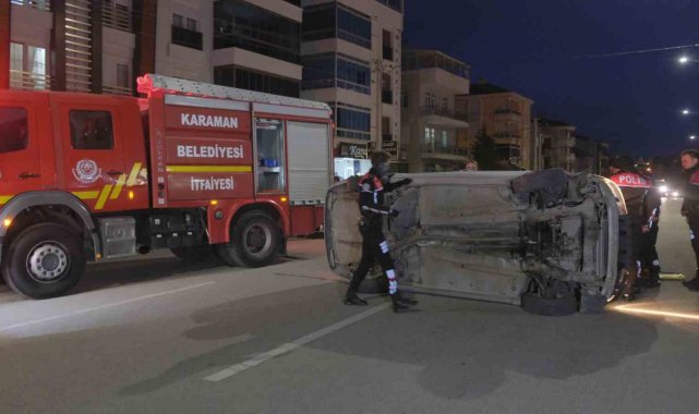 Karaman'da park halindeki araca çarparak devrilen otomobilin sürücüsü aracın altında kaldı. Yaralı sürücü itfaiye tarafından aracın altından çıkarılarak hastaneye kaldırıldı.