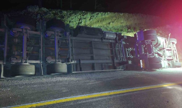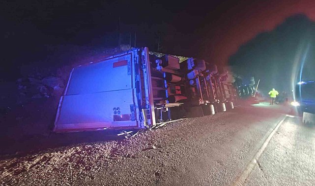 Mersin'in Mut ilçesi sınırlarında yabancı plakalı bir tır devrildi, sürücü olay yerinde hayatını kaybetti.