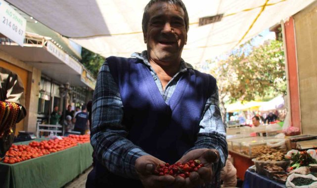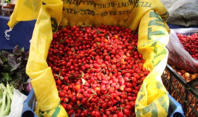 Aydın'ın dağlarından binbir zahmetli toplanan, kış aylarında tercih edilen kuşburnuna rağbet artarken pazar tezgahlarındaki yerini aldı.