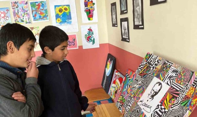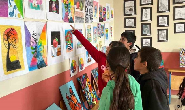 Ağrının Diyadin İlçesinde öğrenciler yeteneklerini sergiledi. Genç yeteneklerin eserleriyle dolu okul resim sergisi ziyaretçilerin beğenisi topladı.