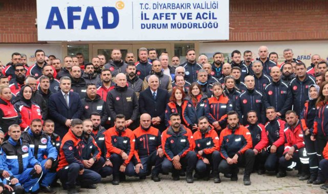 Diyarbakır'da 217 AFAD personeli akreditelerini alıp peç taktı.6 Şubat Kahramanmaraş merkezli depremlerden sonra AFAD, büyümeye devam ediyor. Diyarbakır'da eğitimlerini tamamlayan 217 personel, İl Afet ve Acil Durum Müdürlüğü'nde (AFAD) düzenlenen törende peç taktı.Tören konuşan Vali Murat Zorluoğlu, 2 senede sayının çok ciddi bir seviyeye getirildiğini belirterek, "Diyarbakır olarak bizim de tabi çorbada tuzumuzun olması gerekiyordu ve Diyarbakır'da da AFAD İl Müdürlüğümüz güzel bir çalışma yaparak ilk etapta 217 tane akredite olmuş arama kurtarma personelini hazırlamış olduk. Önümüzdeki günlerde geride bekleyen 241 kardeşimizi de bu güzel ekibe katmanın gayreti içerisinde olacağız. Ama bizim hedefimiz 2025 yılı sonuna kadar minimum bin tane kardeşimizi yine bu güzel ekibin içerisine katarak, Diyarbakır'da çok ciddi bir arama kurtarma ekibi kapasitesi oluşturmak" dedi.Afetlere Müdahale Genel Müdürü Dr. Sadi Ergin, 6 Şubat depremlerinin üzerinden 2 yıl geçtiğini hatırlatarak, 2 yıl içerisinde insan kaynağı, ekipman ihtiyacı ve kapasitenin güçlendirilmesi yönünde ciddi tecrübeleri edindiklerini, acı bir tecrübeyi geride bıraktıklarını dile getirdi."Her türlü afetlere gebe olduğumuz bir coğrafyada yaşıyoruz" diyen Engin, "Yaşadığımız coğrafyada her türlü afete hazırlıklı olmak adına da çok kıymetli STK'larımızın çalışmaları, bizim ve ülkemizin gücüne güç katıyor. Afetlere daha hazırlıklı, daha güvenli bir Türkiye için çalışmalarımız devam ediyor. 150 bin kişilik profesyonel bir ekip olduk. Düdüğün çaldığı anda afete müdahale edecek yaklaşık 150 bin kişilik profesyonel bir ekibe sahip olduğumuzu söyleyebiliriz" ifadelerini kullandı.