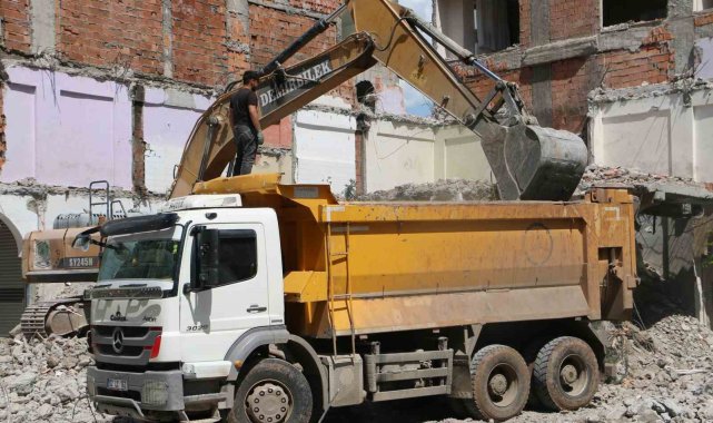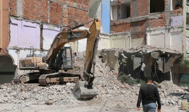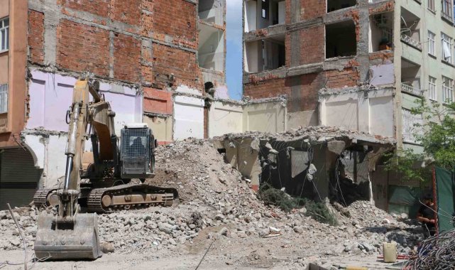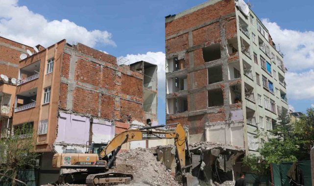 Diyarbakır'da ağır hasarlı bina yıkılırken yandaki sağlam bina da hasar aldı
